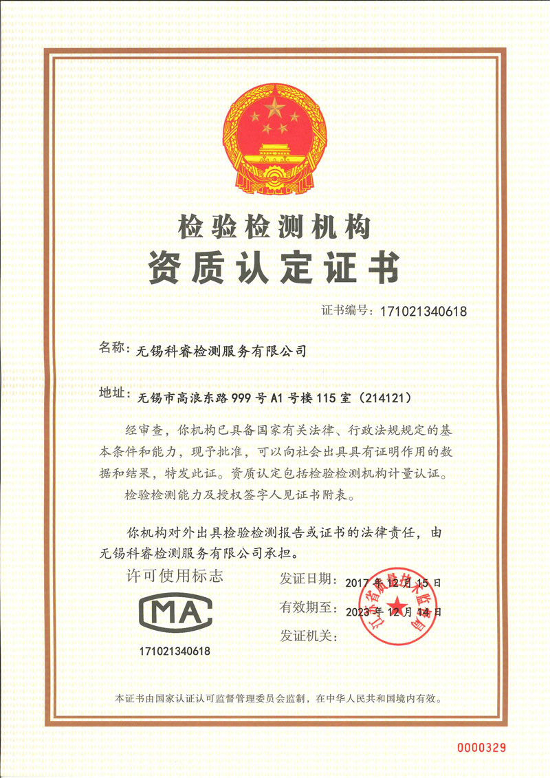 2010年取得CNAS證書,是無錫較早取得證書的民營(yíng)第三方檢測(cè)公司,2014年獲得江蘇省民營(yíng)科技企業(yè)的稱號(hào),2017年獲得檢驗(yàn)檢測(cè)機(jī)構(gòu)資質(zhì)認(rèn)定證書(CMA)等多項(xiàng)榮譽(yù)資質(zhì)。 科睿檢測(cè)始終追求先進(jìn)科學(xué)的技術(shù),過硬質(zhì)量,貼心售后服務(wù)贏得了良好的市場(chǎng)口碑,客戶總數(shù)已達(dá)到1000 家以上,中國(guó)500強(qiáng)企業(yè)已超過100家。